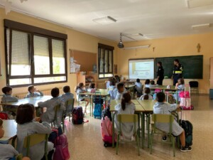 El viernes 7 de octubre los estudiantes de 1º de Primaria recibieron la visita de la Policía Local de Calahorra. Aprendieron sobre educación vial y también sobre los vehículos policiales, pero sobre todo, les recordaron que la policía trabaja para ayudar al ciudadano.